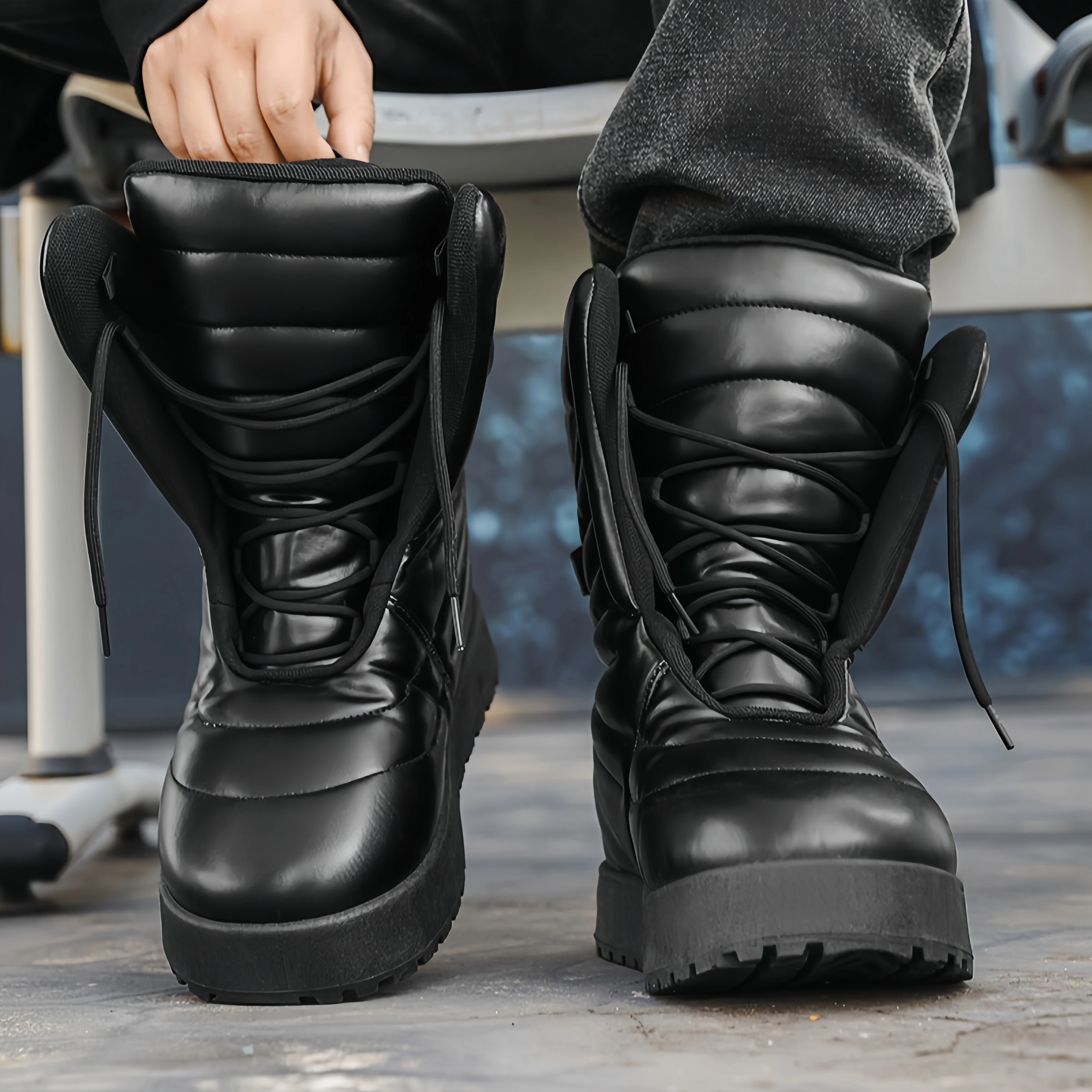 Outdoor Waterproof Ankle-Height Snow Boots Synthetic Leather Mesh Lining Lace-Up Closure Patent Leather All Seasons Rubber